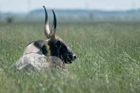 Magyar szürkemarha a Bükki Nemzeti Park Igazgatóság kihajtási ünnepén Tarnaszentmiklós közelében 2024. április 19-én