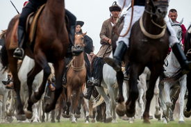 A seregszemle résztvevői a Kurultaj hagyományőrző rendezvényen Bugacon 2022. augusztus 13-án. Az idén 15 éves Magyar Törzsi Gyűlésen minden hun, türk eredettel vagy eredettudattal rendelkező rokonnép részt vesz, hogy együtt állítsanak méltó emléket a sztyeppei lovasnomád kultúrának és a nagy ősöknek.
