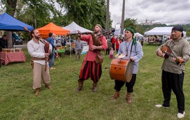Zenészek a pannonhalmi Pannonkamra termelői piacon a megnyitó napján, 2020. június 20-án.