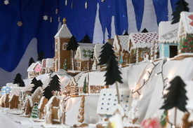 ézeskalács házak a vácrátóti mézeskalács-kiállításon 2024. december 12-én