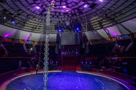 Pavel Valla Bertini Guinness-rekordkísérlete a Fővárosi Nagycirkuszban 2022. január 10-én. Az egykerekű-specialista 17 keréken, 9,07 méter magasan kerekezett körbe a Fővárosi Nagycirkusz manézsában.