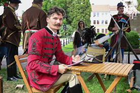 Márton Csaba, a sepsiszentgyörgyi Háromszék Néptáncegyüttes táncosa Petőfi Sándor szerepében Kézdivásárhely főterén 2023. július 30-án. A Kézdiszéki Huszár Hagyományőrző Egyesület, a sepsiszentgyörgyi Székely Virtus Hagyományőrző Egyesület és szegedi hagyományőrzők részvételével emlékeztek Petőfi Sándorra a költő halálának 174. évfordulója alkalmából