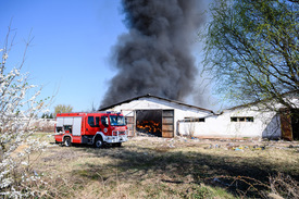 Égő raktárépület a Veszprém megyei Devecserben 2021. március 31-én
