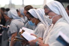 Résztvevők az 52. Nemzetközi Eucharisztikus Kongresszuson a budapesti Hungexpón 2021. szeptember 6-án
