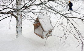 Hólepte parkban sétál egy nõ Moszkvában 2024. január 24-én. Az orosz fõvárosban jelentõs mennyiségû hó hullott ezen a napon