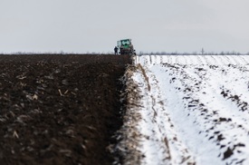 Anda Zoltán gazdálkodó szántja földjét Nagycserkesz határában 2021. január 16-án. A mínusz 3-4 Celsius fokos fagyott földön a munkagép nem süllyed el, de az elmúlt év végén alaposan átnedvesedett föld még jól szántható