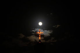 Telihold az égen a bejrúti Szent György templom keresztje felett