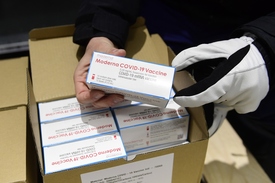 Az amerikai Moderna cég újabb, koronavírus elleni vakcinaszállítmánya a Hungaropharma gyógyszer-nagykereskedelmi vállalat budapesti telephelyén 2021. január 31-én.
