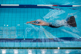 A 800 méteres felszíni úszás egyik versenyzője az uszonyosúszó világkupán az egri Bitskey Aladár Uszodában 2021. október 9-én
