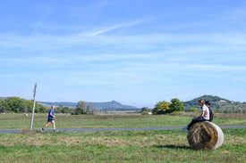 Versenyző a XV. NN Ultrabalaton futóversenyen Kővágóörs közelében 2021. október 1-jén. Idén rekordszámú, 17 ezer futó – több mint 300 egyéni induló és 1700 csapat – vág neki a Balatont megkerülő 216 kilométeres távnak.