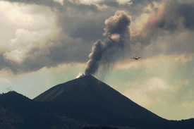 A Pacaya tűzhányó hamufelhőt lövell a magasba Guatemalaváros közelében 2021. február 21-én