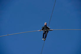 Biztosítás nélkül sétál át a Duna feletti kötélen egy artistaművész