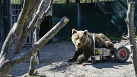 „Nem volt túl sok esélye. Gondozói és az állatorvosok azonban hatalmas életerőt láttak Uszkóban, és megpróbáltak kifejleszteni számára egy speciális kerekesszéket. Gyorsan hozzászokott” – idézte fel a civil szervezet.