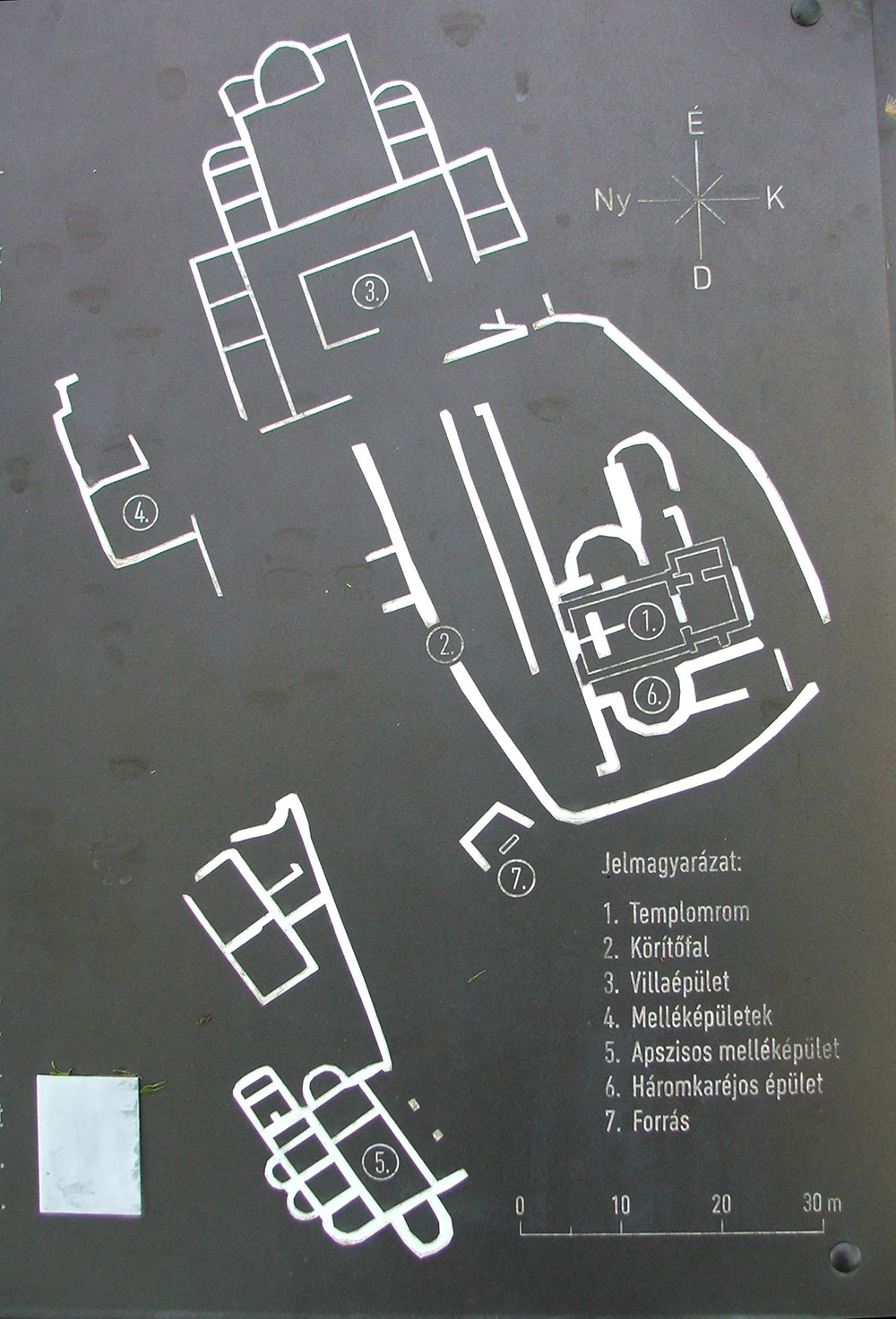 A létesítmény előtt kialakított információs ponton rekonstrukciós rajzzal kiegészített, tömör tájékoztató szöveg idézi fel az épület történetét, melyből kiderül: a valamikori templom 1260 körül épült, főhomlokzatát egykor a vándorok és utazók védőszentje, Szent Kristóf freskója díszítette. A faluval együtt pusztult el, Veszprém 1552-es eleste után, amikor a törökök végig dúlták a Balaton-felvidéket.