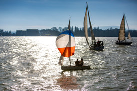 Vitorlások a Balatonon a szilveszteri jótékonysági regattán Balatonlellénél 2019. december 31-én. MTI/Varga György