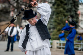 Csikós viseletbe öltözött fiú cserget karikás ostorával 2019. december 31-én Kecskemét fõterén, ahol csikósok, juhászok és cifraszûrbe öltözött pásztorok ostorpattogtatással, regösök regös rigmusok éneklésével búcsúztatták a 2019-es esztendõt. MTI/Ujvári Sándor