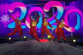 Táncosok az újévi ünnepségen Pekingben 2020. január 1-jén. MTI/AP/Ng Han Guan