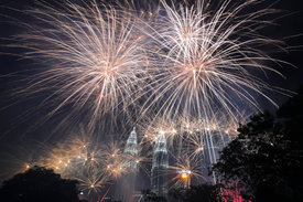 Tûzijátékkal köszöntik az új évet Kuala Lumpurban 2020. január 1-jén. MTI/EPA/Fazry Ismail