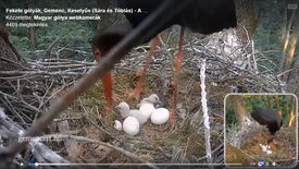 Tóbiás idén is elsőként érkezett meg az országba a fekete gólyák közül, március 2-án délután szállt le gemenci fészkére. Sára március közepén jött meg; helyreállították a fészküket, az első tojást március 29-én rakta le a tojó.