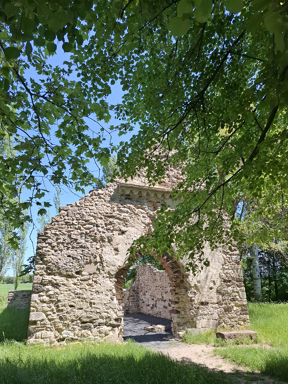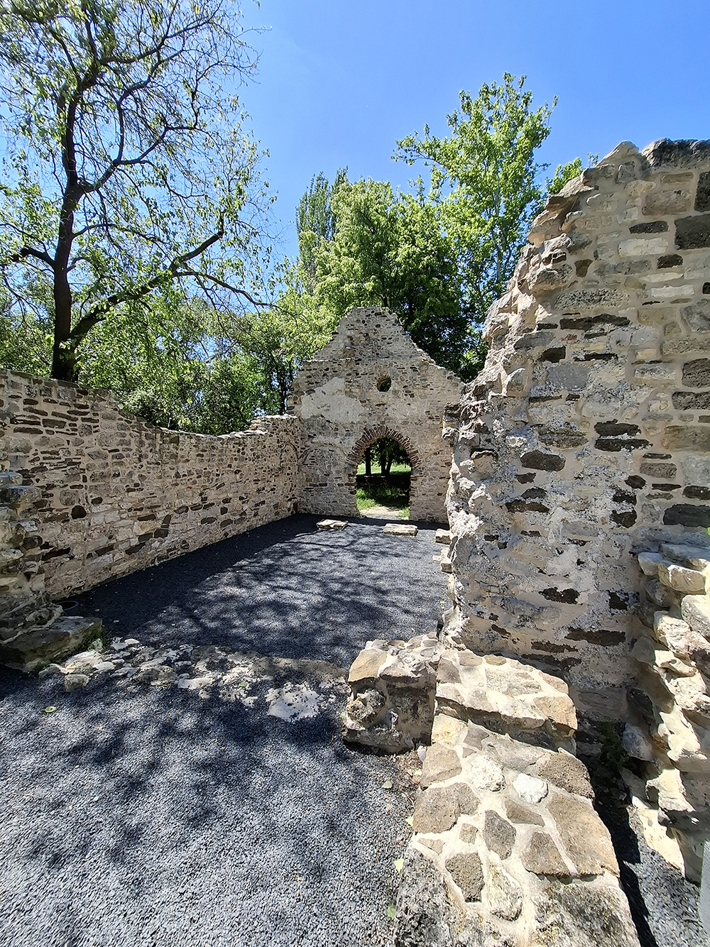 Tihanyt elhagyva, Aszófő felé gurulva kinyílik a táj, a falucska szélén romtemplomra bukkanunk: a XIII. században épült templom az egykori Kövesd község határában állt, és egy itt álló római villa maradványaira épült: majd kétezer év kontinuitása. A romtemplomot szépen gondozzák, vesszőből font kerítés öleli körül. Az egykori oltártól balra eső oldalfal mélyedésében romnaplót találunk, gondosan, vízálló csomagolásban. A kis kötetbe a látogatók gondolataikat is leírhatják, vagy csak üzenhetnek arról, hogy itt jártak.