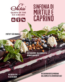 A ”Sinfonia di mirtilli e caprino„, vagyis az ”Áfonya és kecskesajt szimfónia„ névre keresztelt fagylalt a következő elemekből épül fel: