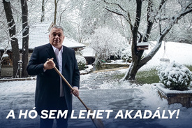 Orbán Viktor miniszterelnök havat lapátolt április 3. hideg reggelén