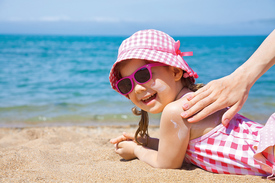 A napsugárzás káros hatásai ellen védő kozmetikumok egyelőre nem tudják kiszűrni az összes UV sugarat, és még a kenegetés sem jelent teljes védelmet akkor, ha hosszú időn át kell a napon tartózkodnunk. Az ilyen termékeknek jellemzően két fajtáját különböztetjük meg: a fizikai és a kémiai napfényvédőt. Az előzőben jellemzően cink-oxidot vagy titánium-dioxidot használnak, amelyek a bőr felszínén megülve fizikailag visszatükrözik a napsugarakat. Általában ezek a készítmények nehezebbek, sűrűbbek és gyakran egy átlátszó fehér réteget képeznek a bőrfelszínen. A kémiai napfényvédők ezzel szemben behatolnak a bőrbe és szivacsként szívják magukba a nap sugarait. Bár használatuk rendszerint kellemesebb, mint a fizikaiaké, fontos tudni, hogy hatásuk nem azonnali, ezért felkenésüket nem lehet az utolsó pillanatra hagyni. Mindkét termékfajta esetében a legfontosabb szempont mégis az, hogy – és ez nem csupán akkor érvényes, ha strandolunk vagy a tengerben mártózunk meg – rendszeresen újra és újra fel kell kenni, ha a maximális védelmet várjuk tőle (ami például az SPF50-es termékeknél az UV-B sugarak nagyjából 98 százalékának szűrését jelenti). Az amerikai társaság kétóránként ajánlja az ismétlést, más források akár négyórányi időszakot is engedélyeznek az újbóli használat előtt.