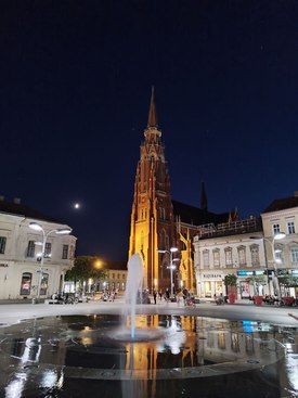 A város építészete erősen eklektikus, a barokktól a klasszicizmuson át a tüneményes szecesszióig sokféle stílus gyönyörködteti a szemet, de a jugoszláv szocreál is rányomta a bélyegét az összképre. Az épületek egy részén ma is láthatók a háború nyomai.