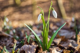 Nyílik a hóvirág (Galanthus) a Somogy megyei Sántos közelében fekvő erdőben 2022. február 7-én