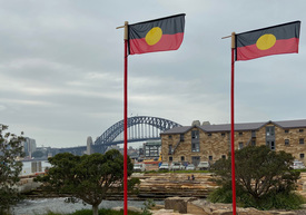 Az őslakos zászlót Harold Thomas tervezte 1971-ben. A fekete és vörös sávok közepében arany kört ábrázoló lobogó az őslakosok és az ausztrál föld kapcsolatát hivatott szimbolizálni. A kormány 1995-ben ismerte el hivatalosan a zászlót, de Thomas mindmáig megtartotta annak szerzői jogait. A férfi korábban engedélyezte, hogy egy nem őslakos cég ruházati darabokon használja a lobogó képét, ami jogi vitákhoz és felzúduláshoz vezetett.