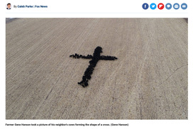 A már nyugdíjba vonult Hanson szomszédjának körülbelül százötven fekete szarvasmarháját keresztalakzatba terelte, hogy így emlékeztesse az embereket a megváltó megszületésére.