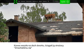 Tehenet emeltek le egy kétemeletes lakatlan épület tetejéről a tűzoltók Lengyelországban – adta hírül kedden a Polsat News lengyel hírtelevízió.