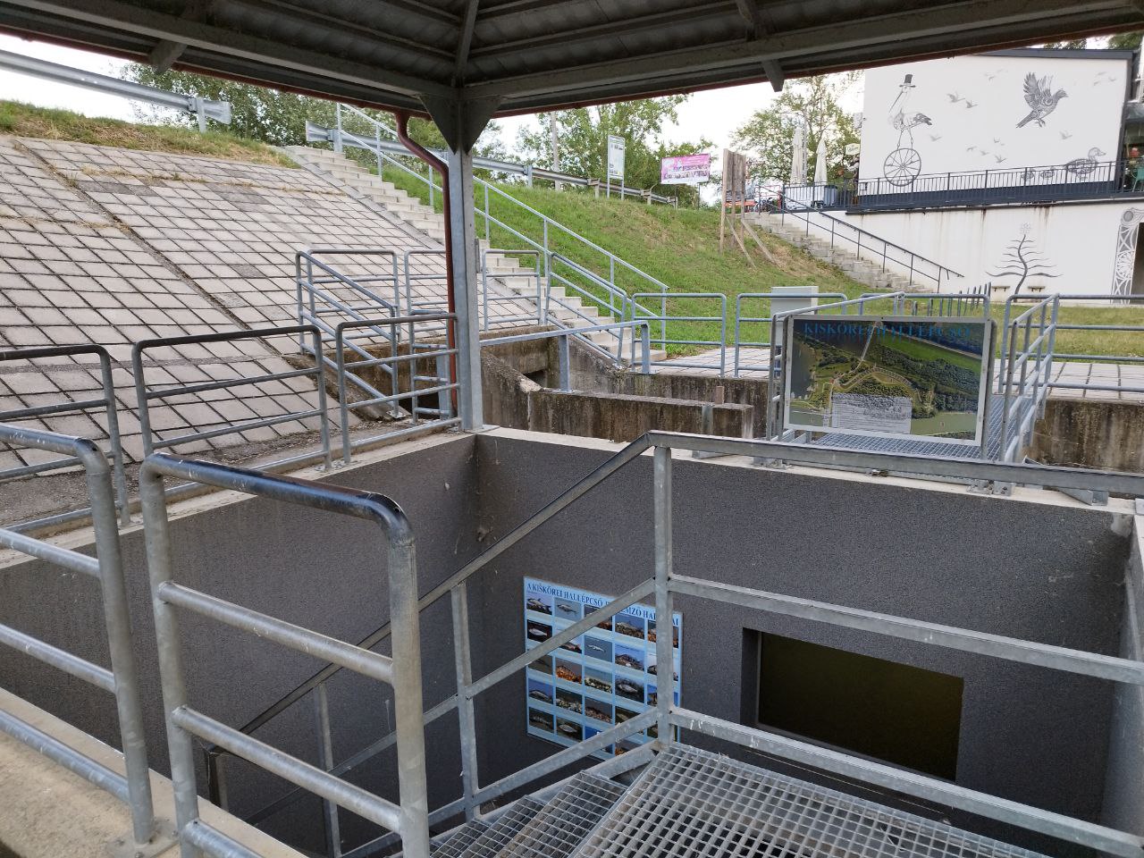 A hallépcső látványossága a vizet rövid szakaszon betoncsőben vezető csatorna elején a falakba üvegablakok beépítésével kialakított halles. Érdemes türelmesen figyelni, két-három percenként elúszik előttünk egy-egy hal, néha halrajok. Körülbelül tíz perc alatt számtalan dévérkeszeget láttunk, de néhány tekintélyes ponty, sőt, egy kősüllő és egy harcsa is felbukkant. A duzzasztó alatti nagy zúgónál pedig szinte forr az oxigénben gazdag víz, uszonyok végeláthatatlan sokaságában gyönyörködhetünk.
