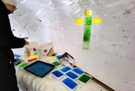 Jégből készült színes „üvegtéglákból” csináltak keresztet a falubeliek a különleges építménybe.Nem mindennapi összefogás bontakozott ki a napokban Pilisszántón. A bőséges havazás nemcsak a tél szerelmeseit csábította ki a szabadba, hanem egy már hagyománynak számító közösségi programra is lehetőséget adott: a helyiek kis közössége ismét hókápolnát épített a település határában.