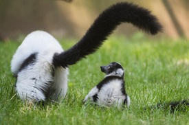 A makik családjához tartozó vari (Varecia variegata) majom született a Nyíregyházi Állatparkban.A makik családjához tartozó vari (Varecia variegata) majom született a Nyíregyházi Állatparkban.