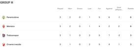 A csoportot a Monacóval szembeni jobb egymás elleni eredménynek köszönhetően továbbra is vezeti a hatpontos Ferencváros.