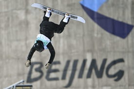 Kozuback Kamilla a női hódeszkások big air versenyszámának selejtezőjében a pekingi téli olimpián a Big Air Soukang sportközpontban 2022. február 14-én
