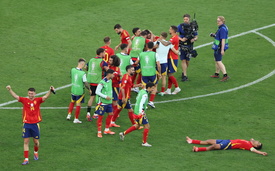 A spanyol labdarúgó-válogatott hosszabbítás után, a 119. percben fejelt góllal 2-1-re legyőzte a házigazda német csapatot az Európa-bajnokság első, pénteki negyeddöntőjében.