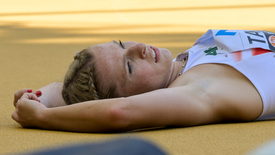 Takács Boglárka a nõi 200 méteres síkfutás selejtezõje után a budapesti atlétikai világbajnokságon a Nemzeti Atlétikai Központban