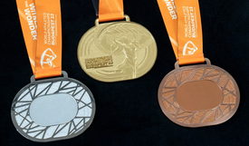 Az előlapján a Szabadság-szobrot, a hátoldalán pedig fölülnézetből a Nemzeti Atlétikai Központ tetőszerkezetének tartópilléreit ábrázolják a budapesti atlétikai világbajnokság kedden bemutatott érmei, amelyek a 400 méteres futókörre utalva ellipszis alakúak.
