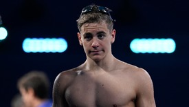 Betlehem Dávid a férfi 800 méteres gyorsúszás előfutama után a dohai vizes világbajnokságon 2024. február 13-án.