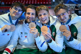 A világbajnoki bronzérmes férfitőrcsapat: Szemes Gergő, Dósa Dániel, Tóth Gergely és Mihályi Andor (b-j)