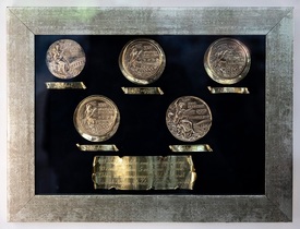 Egerszegi Krisztina ötszörös olimpiai-, kétszeres világ-, és kilencszeres Európa-bajnok magyar úszó olimpiai aranyérmei a Világraszóló bajnokaink – 177 mesés győzelem című interaktív olimpiatörténeti kiállítás megnyitóján a Millenáris Parkban 2021. július 20-án. A kiállítás az eddigi magyar ötkarikás győzelmeknek állít emléket