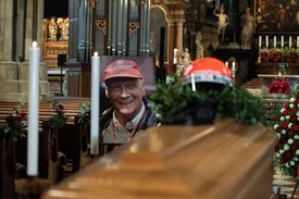A búcsúztató után Lauda koporsóját a Forma-1-es pilóták kíséretével kivitték a székesegyházból, és elszállították a temetésre, amelyen már csak a szűk családi kör vesz részt.