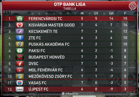 A címvédő és listavezető Ferencváros 6-0-ra kiütötte idegenben ősi riválisát, az Újpestet a labdarúgó OTP Bank Liga 7. fordulójának vasárnap esti zárómérkőzésén. A zöld-fehérek öt mérkőzéssel a hátuk mögött százszázalékos teljesítménnyel a tabella élére ugrottak, míg az Újpest továbbra is nyeretlenül sereghajtó.