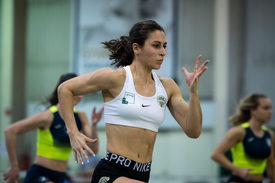 A késõbbi gyõztes Csóti Jusztina, a Ferencváros versenyzõje a nõi 60 méteres síkfutás döntõjében a fedett pályás atlétikai bajnokságon a budapesti BOK Csarnokban 2021. február 20-án.