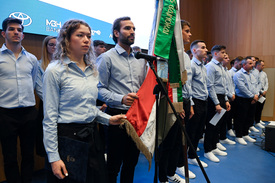 A köszöntőket követően került sor az eskütételre. A fogadalom szövegét Szilágyi Áron háromszoros olimpiai aranyérmes, világ- és Európa-bajnok kardvívó és Patakfalvy Luca Európa-bajnoki bronzérmes tekvondós mondta előre a társaknak.
