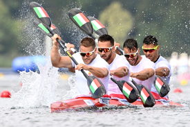 A Nádas Bence, Csizmadia Kolos, Kuli István, Tótka Sándor összeállítású magyar egység kedden másodikként ért célba az előfutamában, ezzel közvetlenül középfutamba került. Csütörtökön a kettőből a második futamban szerepelt és arra kellett csak ügyelnie, hogy egy ellenfelet legyőzzön, mivel az ötösből négy hajó továbblépett. A címvédő és világbajnok német mellett litván, új-zélandi és dán egység szerepelt még itt. A német hajóban ott ült Tom Liebscher-Lucz, a korábbi Európa-bajnok, Tokióban 200 méteren hatodik Lucz Dóra férje is.