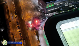 A ferencvárosi szurkolók, akárcsak legutóbb a Dinamo Zagreb ellen, ezúttal is a Groupama Aréna mellől bíztatták kedvenceiket, akiknek egy Edda Művek-idézetet is hagytak a kapu mögött, a B-közép lelátóján: „Adj erőt, hogy be tudjak lépni, van hitem a magas falak előtt!