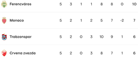 A nyolcaddöntőt jelentő csoportelsőséghez az is kellett, hogy a kvartett másik mérkőzésén a szerb Crvena zvezda legyőzte a török Trabzonsport.